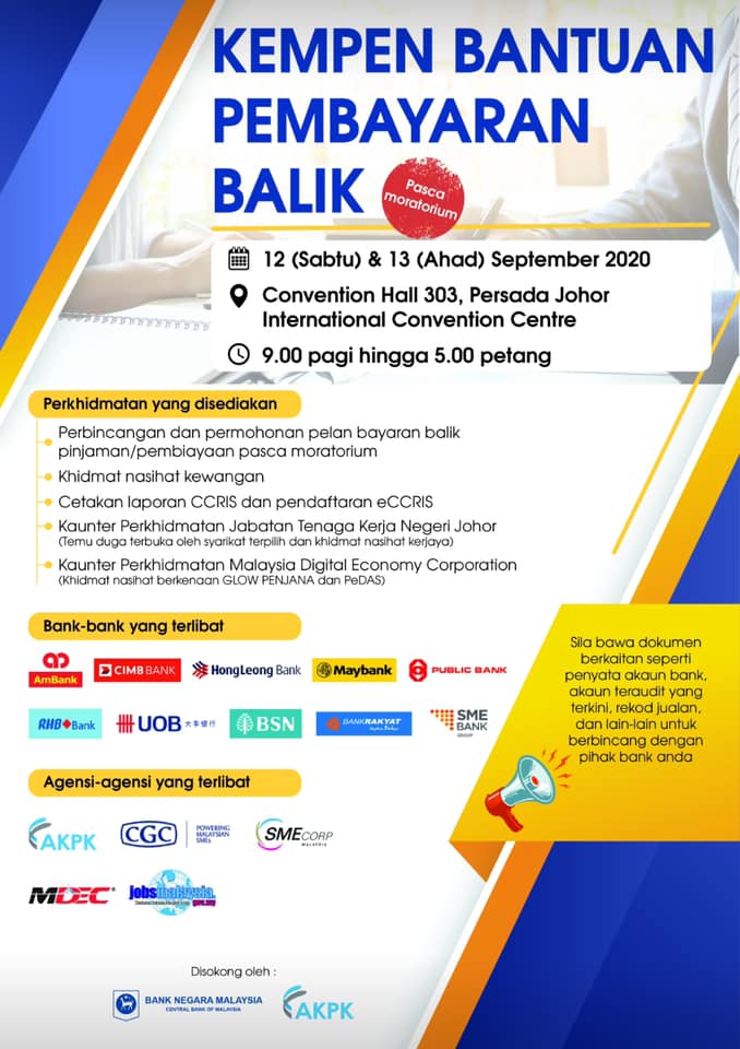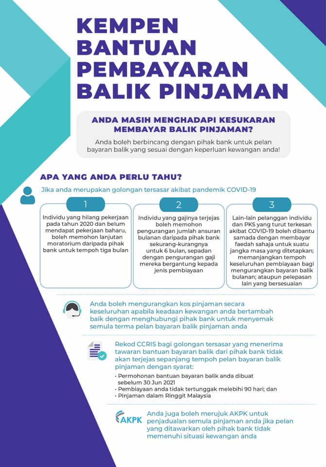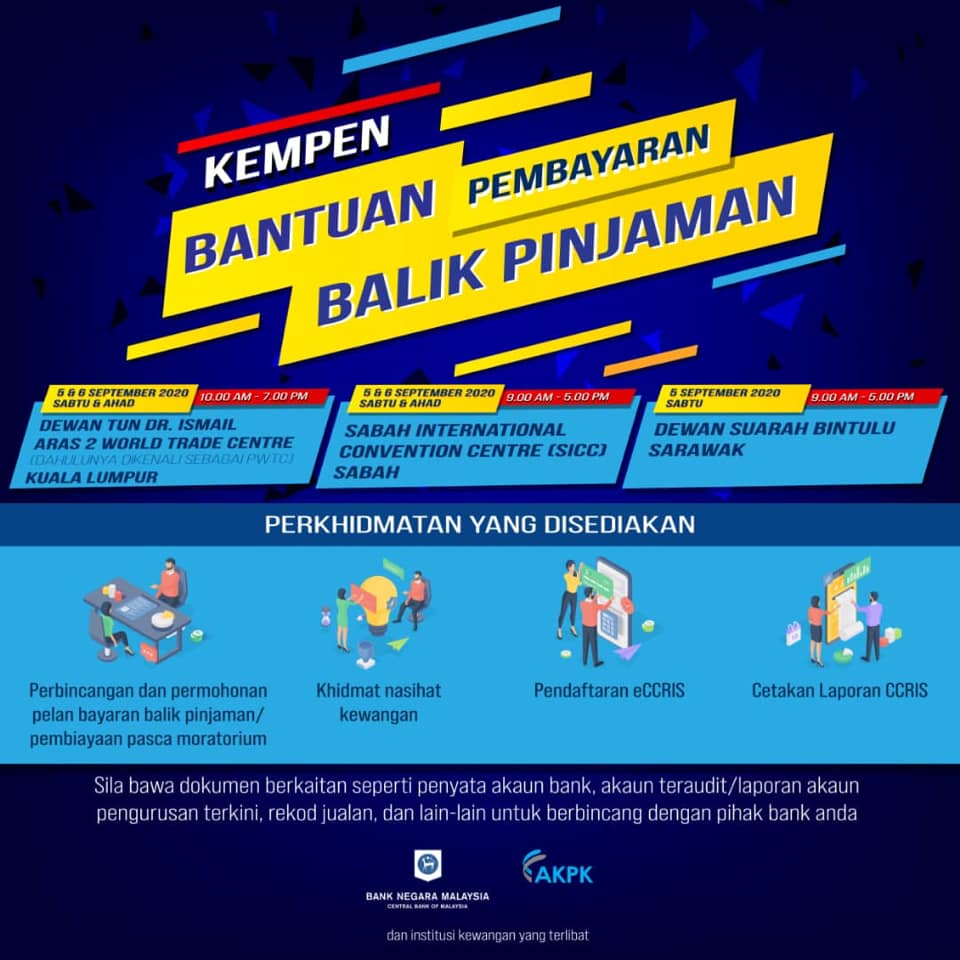 Segeralah berbincang dengan bank anda atau temui kami di Kempen Bantuan Pembayaran Balik Pinjaman: