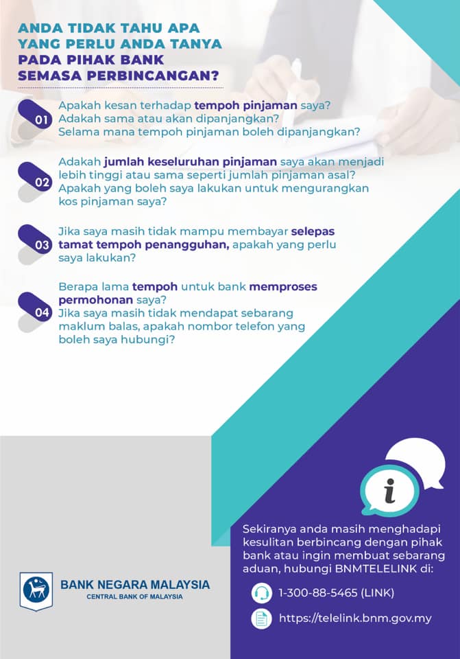Apa yang anda perlu tahu ketika berbincang dengan pihak bank berkaitan pelan bayaran balik pinjaman yang sesuai untuk anda; atau ketika berkunjung ke Kempen Bantuan Pembayaran Balik Pinjaman.