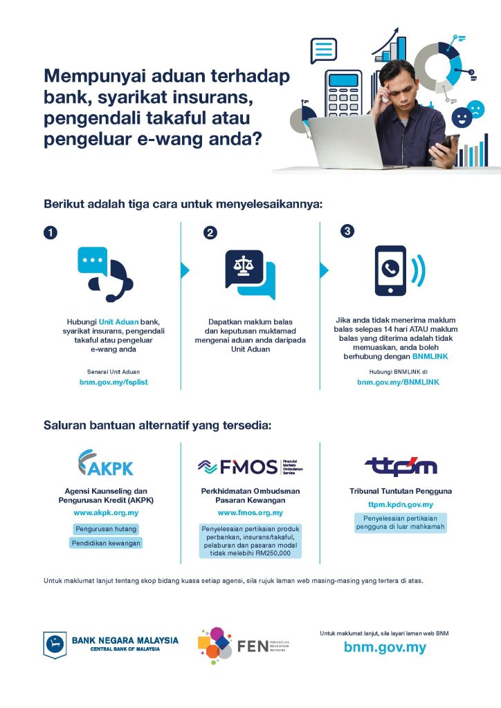 Got an issue with your bank, insurance company, takaful operator or e-money issuers?